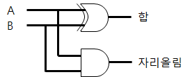 실제 논리게이트는 이것보다 훨씬 복잡하지만 덧셈 논리게이트를 간단히 보면 이런 형태이다.
