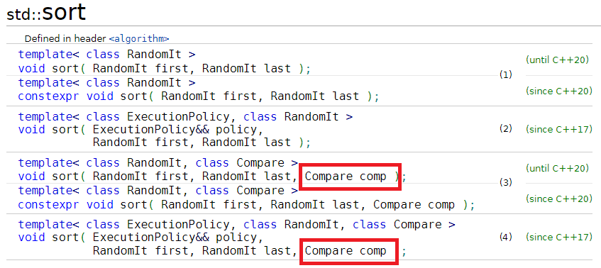 함수 포인터와 같은 목적으로 사용하는 대표적인 예가 std::sort() 함수이다.